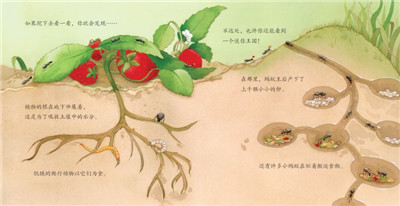 阳光灿烂的日子里,许多生物都忙碌起来。花儿绽放,蜜蜂采蜜,小燕子练习飞行,蛐蛐儿在草丛中玩耍……在大晴天,我们会有很多有趣的发现!