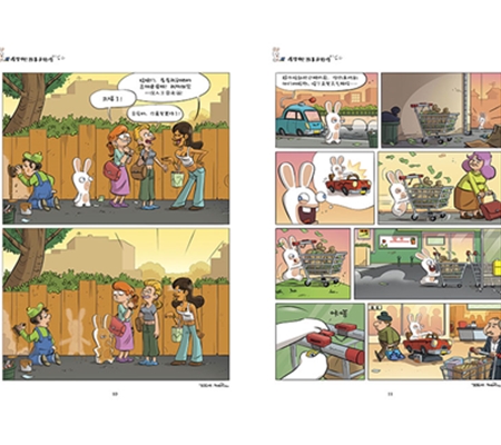 《雷曼4:疯狂兔子》是由全球知名游戏公司——法国育碧研发的电子游戏,自推出后风靡全球,深受玩家一致好评。该电子游戏的主人公——古怪、滑稽的疯狂兔子更在Youtube上吸引了5000万粉丝,相关产品销量超过1400万。“疯狂兔子爆笑漫画书”是一套以疯狂兔子为形象的漫画书,为国内首次出版,讲述了疯狂兔子是一群外星侵略者,他们喜欢模仿人类的行为,也因此产生了各种各样的笑话。这些兔子唠叨着谁也听不懂的兔语,时不时大声尖叫,凭借与生俱来的幽默感带给读者无穷无尽的欢笑。丛书插图线条流畅,情节风趣幽默,能够激发小读者的想象力和创造力,带来更加丰富的阅读体验。分册《环保先锋》讲述了疯狂兔子响应人类号召,对垃圾进行分类。水瓶、纸箱、易拉罐……各种垃圾分门别类,这样做是不是真的能改善环境呢?本书可以培养小读者的环保意识,懂得保护环境不是一句口号,而是要落到实处。