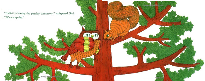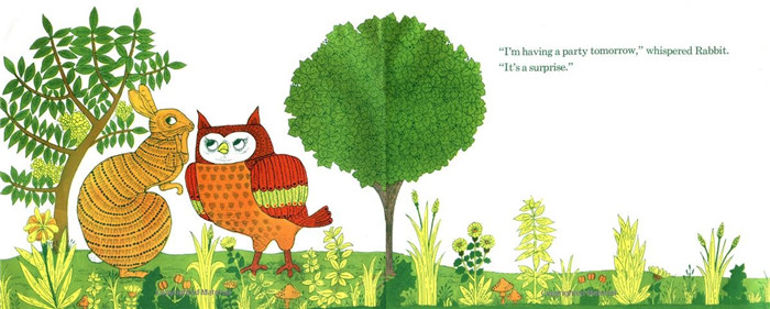 "I'm having a party tomorrow," Rabbit whispers to Owl. "It's a surprise." But Owl tell the news to Squirrel, he says, "Rabbit is hoeing the parsley tomorrow. It's a surprise." By the time word has spread to all of Rabbit's friends, it's anyone's guess just what it is that Rabbit will be doing tomorrow!