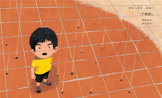 炎炎夏日,主人公少年看到天空飘来一朵乌云。“下雨啦!”空气中弥漫着天空的气息,从大地传来泥土的味道,少年被雨水包围,四面八方传来下雨的声音。大雨下得酣畅淋漓,少年索性扔掉雨伞在雨中狂奔,用整个身心感受大雨以及雨中的自然之美。雨停了,少年回家前和雨约定“下次还要一起玩儿!”绘本中,少年勇敢地抛开雨伞和大雨嬉戏玩耍的情景带有强烈的临场感,充分体现出大自然的美好、少年对自然的热爱和他强烈的冒险精神。这是一本非常适合亲子阅读的优秀绘本。