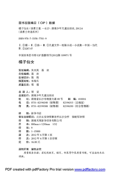 这是著名儿童文学作家汤素兰献给孩子们的又一份大礼。图书包含《苹果王子》《橘子仙女》》等名篇,故事充满童趣,又充满温馨。本书延续了整个系列的关键词“奇迹”,仍然处处充满惊喜和想象。全书中还随处可见一些小哲理,关于友情,关于认清自己,关于坚守承诺,关于互相帮助,每个小故事都传达出作者的一种观点。
