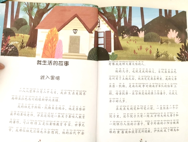 主要写海伦变成盲聋哑人后的生活。刚开始,海伦的情绪非常暴躁,她感觉不到现实生活中的爱,她的内心充满了对光明的渴望。直到安妮·莎莉文老师的到来,才燃起了海伦对生活的希望。随着时间的推移,海伦在老师和亲人的陪同下,学会了阅读和写作,认识和体会了许多不同的事物。