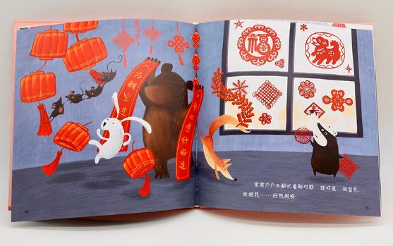一本富有童趣并带领孩子感受中国传统文化的节日绘本,讲述了利用蛛丝编织衣服饰品的蜘蛛西西,在过年的时候通过富有创意的方法,让自己吐出红色的丝,织出喜庆的红色衣服、红色的窗花,让朋友们热热闹闹过年的故事。画面中所含的对联、窗花、中国节等物品带有浓浓的传统文化意味,可触发孩子对过年习俗的关注,感受喜庆的年味儿。