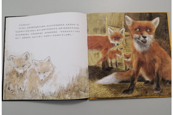 劳伦斯·布吉尼翁文的《狐狸与我(精)》为“爱之阅读馆绘本阅读”系列之一,讲述这样一个故事:一个冬天,我正在画画,突然一声枪响,一只狐狸逃跑到我的庭院里。我与她对视,从此之后,我每天给她留一碟食物。再后来,我发现了她的家,那里有一窝狐狸小崽子。我总是保持对它们的观察,留意崽子长大、变化。