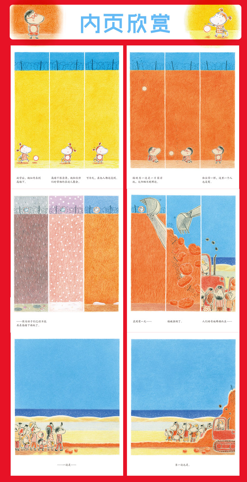 《大憨熊绘本馆:墙的另一边》画风温暖细腻,非常强调细节,富有生活情趣。鲜明的色彩,富于变化的构图增添了趣味性和空间感。作者用细腻、平实的文字,从生活的视角展开故事。