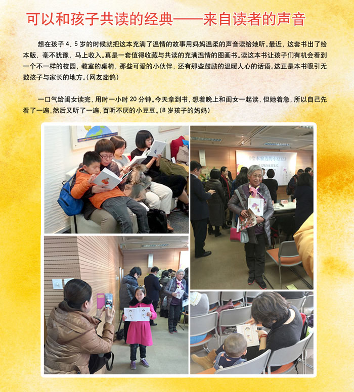 作为日本至今最畅销的图书,黑柳彻子的《窗边的小豆豆》在单行本发行30年后,第一次作为绘本出版。黑柳女士撰写了新的文章,并审订了文字和插画。绘本还挑选了人气绘本画家岩崎千弘的插画多达100余幅。相信孩子们会在“小豆豆”的世界中获得快乐,父母与孩子相互交流的机会也会增多。——《读卖新闻》