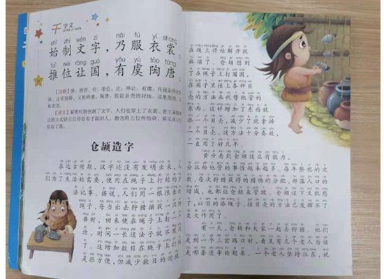 《千字文》原名为《次韵王羲之书千字》,南朝梁(502年~549年)周兴嗣所作的一首长韵文。它是一篇由一千个不重复的汉字组成的文章。据说是梁武帝取了王羲之写的一千个字体,令其亲人练习书法,而后觉得杂乱无章,于是又命周兴嗣(470年~521年)编为一篇文章。千字文是用来教授儿童基本汉字之重要啓蒙读物,和《三字经》、《百家姓》合称“三百千”。同时在汉字文化圈各国也受到重视。