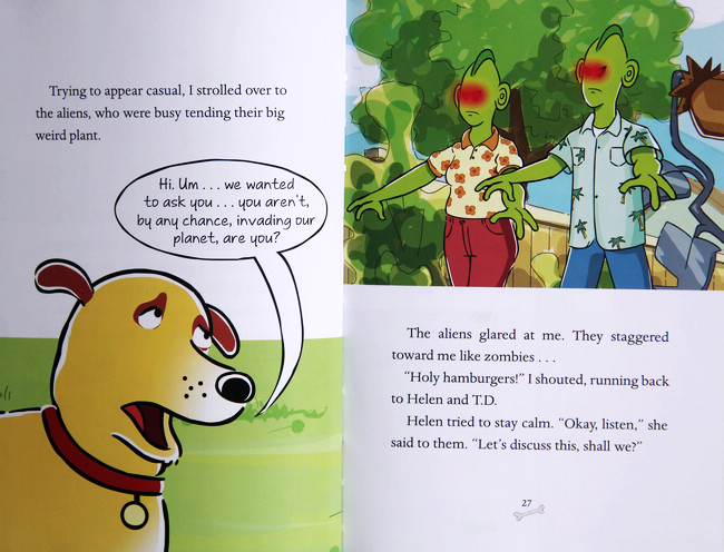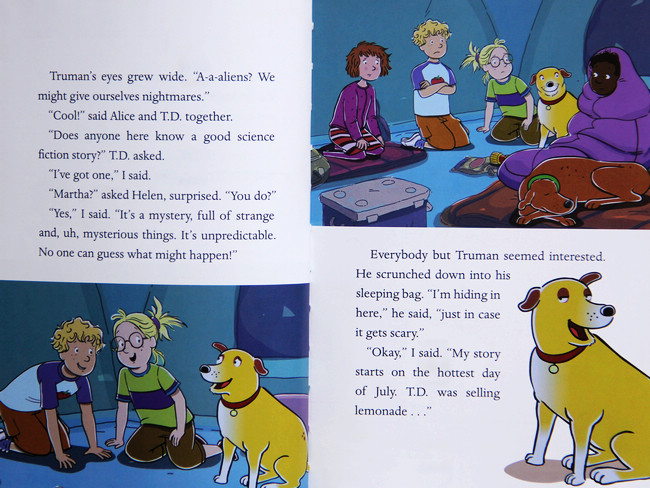 Nothing turns a backyard camp-out from yawn to "Yowza!" like a few scary stories. When their repertoire of shadow puppets is exhausted, Martha (the talking dog from PBS’s hit TV show Martha Speaks)and her friends decide to share some science-fiction stories—the creepier the better! Martha tells one about aliens from Venus who eat frozen yogurt with their ears, T.D. scares everyone with malevolent alien cat people, Helen tells "The Telltale Artichoke Heart" about a disturbing tin can ("THUMP. THUMP. THUMP"), and Alice tells "Night of the Phantom Scarecrow." A few Campfire Story Starters will have aspiring storytellers off and running!