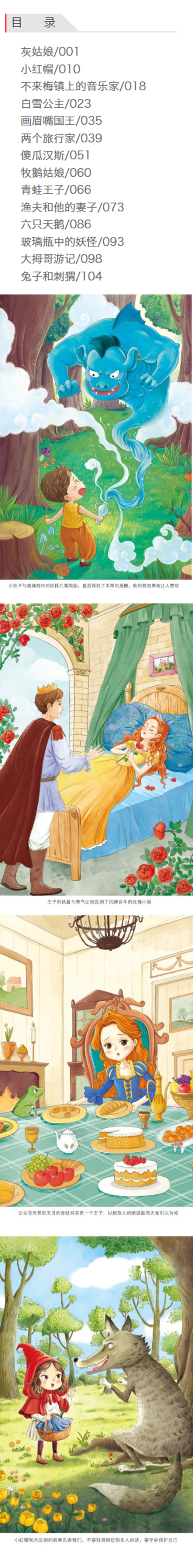 《格林童话》由格林兄弟在大量搜集民间童话的基础上加以记录、整理而成。书中的童话故事情节曲折生动,内容引人人胜。通过丰富奇幻的想象,抨击懒惰自私、贪婪虚伪的人性弱点,歌颂勤劳勇敢、诚实谦逊的美好品德,反映了正义与邪恶、善良与凶残、诚实与虚伪、智慧与愚昧、勇敢与怯懦、勤劳与懒惰等一系列具有普遍意义的人生主题。《格林童话》堪称德国文学中的一颗璀璨的明珠,更是瑰丽多彩的世界童话王国中一株争奇斗艳的奇葩。它语言质朴,内容浅显,孩子们可以从中懂得简单的人生哲理和基本的价值观。