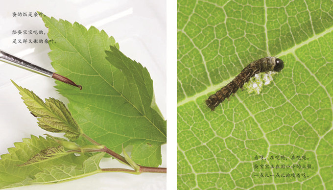 从花种一样小小的卵,到蚕宝宝,到吐丝结茧,化蛹,再到变成蛾,小小的蚕的一生很短暂,却非常伟大。你知道吗,一个茧所用掉的丝,大约有1500米长。而且,蚕宝宝就会吐丝哟!