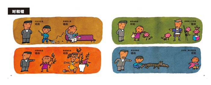 著名绘本作家五味太郎以他独具创意的构思、妙趣横生的画面表现方式向孩子呈现语言的魅力。在书中有6对相对应的形容词,作者通过多个情节设置,通过在不同条件下的比较,来表现语言的丰富性和现实中的相对性,与其说这是关于语言的认知书,不如说是以语言的线索串联起来的一个个有趣的故事。图书内文采用翻页形式,不但是为内容讲述服务,同时凸显为孩子带来阅读的乐趣。本书中介绍的词语包括:大和小,干净和脏,容易和困难,亮和暗,软和硬,好和坏。在书的最后,五味太郎总结了他的创作构想,有利于读者对本书的更进一步了解。
