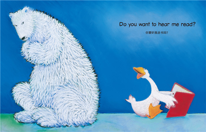 这套书特别的地方是保留着原汁原味的英文,是一套中英双语图画书,孩子可以读中文,也可以念英文,自然而然学习两种语言。英文的句子简短、流畅、优美,有些地方还押韵,读起来轻快流利、有节奏感,孩子朗朗上口之间,已经学习许多字词,熟悉各种句型,念完整篇故事。爸妈或老师也可以引导孩子用英文说故事或演故事,英语能力一定大为精进。这三本书除了故事带给孩子无限惊喜外,张张图画更让孩子爱不释手,没有繁复花俏的背景,有的是可爱的造型、生动的表情、逗趣的动作、丰富的色彩,一再散发出暖融融的友情,让人欢喜啊!与孩子共读时,爸妈尽量让孩子用眼睛看、用嘴巴说、用手触摸、用心体会,给孩子与图画眼神交汇、心灵交流的时间,这才是幼儿阅读图画书*棒的方式。