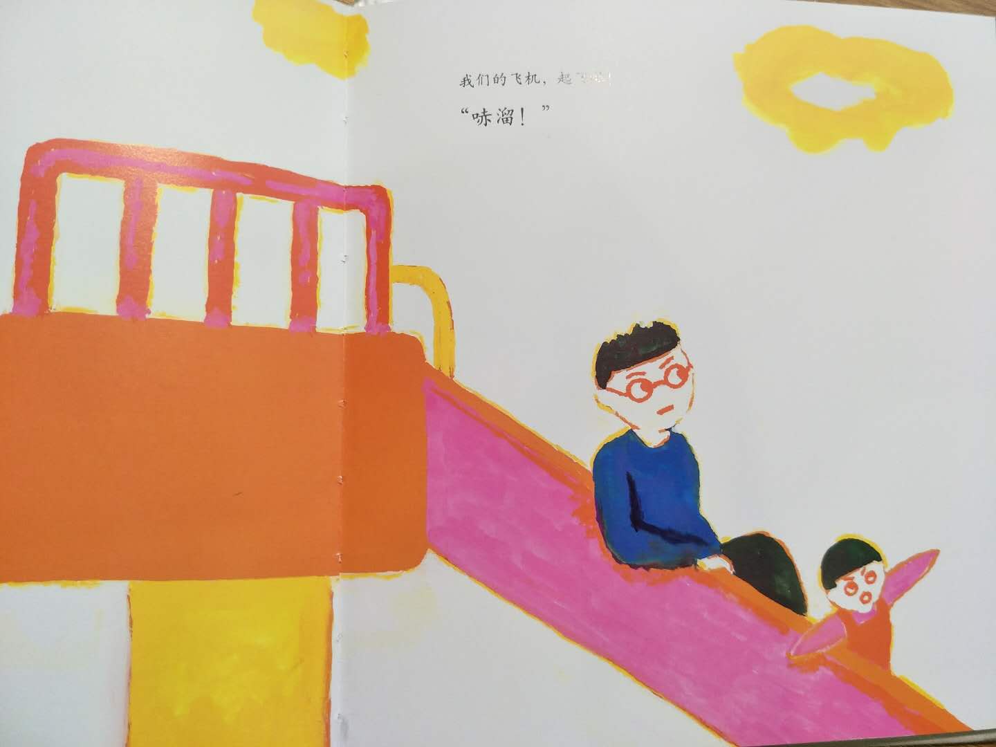 小花和爸爸一起去公园玩。小花特别喜欢滑滑梯小花和爸爸一起登上滑梯的梯子。我们的飞机,起飞啦――哧溜――小花的飞机飞过高速公路,越过富士山“啊,那是东京铁塔!”这时候,一只大鸟飞过来,发出“砰砰”的声音靠近小花的飞机。
