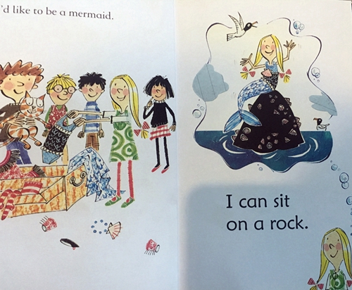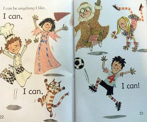 《化妆箱》:化妆箱里有各种各样的道具,可以让孩子们装扮成美人鱼啦,演员啦,狗熊啦,水手啦。。。。本书为初级儿童读物系列中的第一级(共22本),内容词汇均简单,适合幼儿和初学者亲子共读:自然拼读the-very-first-reading-level。整体编排巧妙,专为语言启蒙和亲子阅读而设计,左边页面的文字字体略小由家长朗读并加以解释,而右边的文字字体大而简单朗朗上口,适合让孩子大声拼读出来,这样搭配,孩子的阅读成就感大大提升。书末附有几个基于故事情节的亲子小问答以巩固阅读的乐趣和收获,所有的问答都附有答案哦。