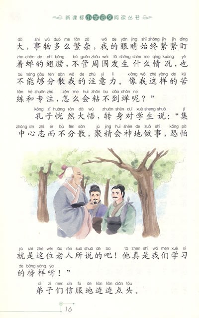 由二十一世纪出版社出版的“新课标小学语文阅读丛书(彩绘注音版)”问世了。这套丛书所选有中外名著,有文学经典,都是情趣兼备的、人们百读不厌、早有定评的优秀作品,是编辑叔叔、阿姨们奉献给小学中低年级孩子的一道精美的文化“大餐”。也许小朋友们会说:我们年纪小,识字不多,怎么能啃得动名著和经典呢?这一点不用担心,编辑叔叔、阿姨们早就为你们考虑到了。这套丛书大都根据小学中低年级学生的语文程度进行了改写,深入浅出,文笔生动,趣味盎然。如果遇到生字,只要拼拼上面的注音,再联系上下文想想,你们就可以扫除“拦路虎”,顺畅地阅读了。“新课标”特别提倡要“少做题,多读书,好读书,读好书,读整本的书”。为什么“新课标”如此重视课外阅读呢?因为要想学好语文,单靠一本教科书是远远不够的。一本教科书只有二三十篇课文,即使背得滚瓜烂熟,又能获得多少信息呢?只有既抓好课内阅读,又抓好课外阅读,使我们“得法于课内,受益于课外”,才能不失时机地开阔我们的眼界,增长我们的知识,培育我们的智慧,丰富我们的审美体验,提高我们思考、分析、判断的能力。
