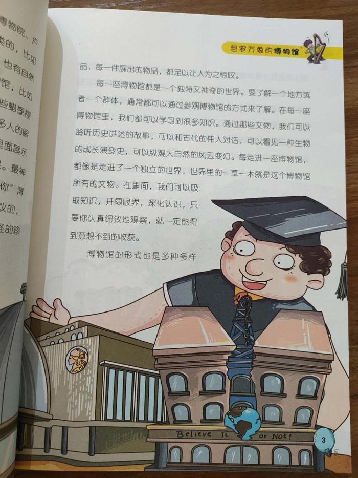 你一定知道罗浮宫、大英博物馆、俄罗斯的东宫,这些都是成列世界上珍藏艺术品的博物馆。但你知道面包博物馆吗?你参观过皮鞋博物馆吗?你去过汽车博物馆吗?世界上各种各样、奇奇怪怪的博物馆,有一些可能是你闻所未闻的,请打开本书,走进博物馆的精彩世界吧。本书从儿童的审美和心理出发,每节都有与之对应的精美彩图,内容丰富、文字浅显易懂,通过简单的小故事把知识娓娓道来,既学习了知识,又开拓了眼界,增强了审美能力,是孩子不可或缺的优质读物,陪伴孩子成长的必备童书。