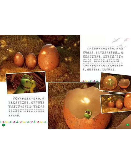 这是一本图画故事书。讲述了一只爱冒险的小恐龙阿洛与人类小男孩成为了朋友,他们互相照顾环游世界,经历了一段温馨又刺激的旅行,并最终帮阿洛找到家的故事。作为一部恐龙主题故事,阿洛的形象可爱柔和,充满亲切感,给孩子温暖的视觉感受。