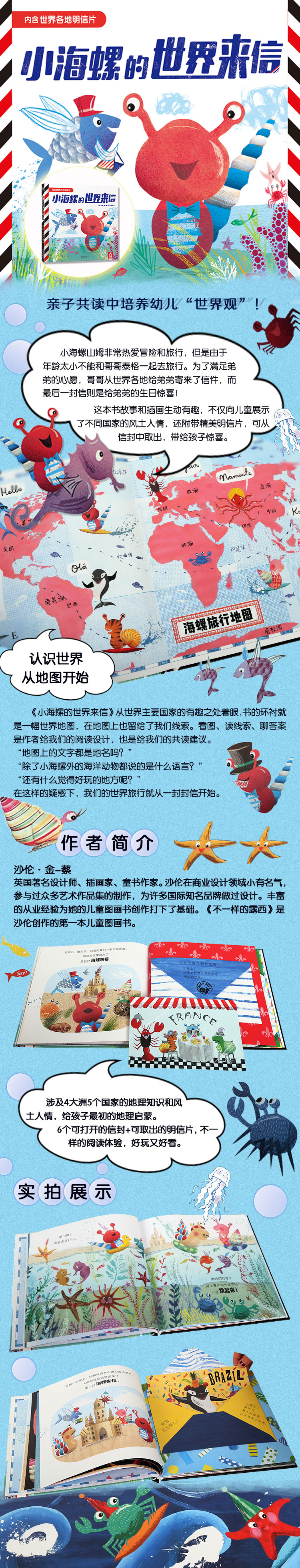 这本书故事和插画生动有趣,不仅向儿童展示了不同国家的风土人情,还附带精美明信片,可从信封中取出,带给孩子惊喜。