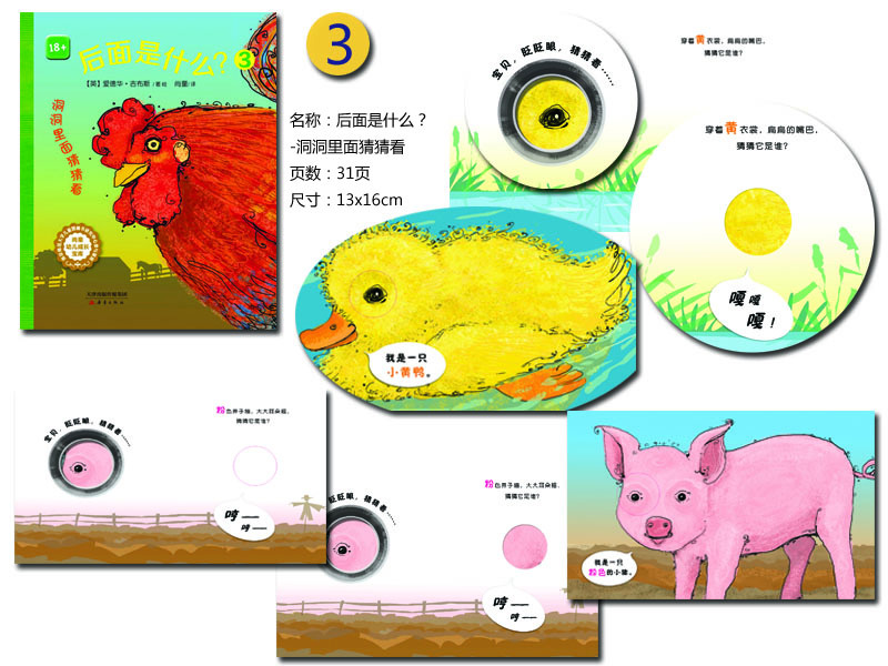 “孩子是脚,教育是鞋。”《后面是什么?》为处于小动作敏感期的孩子提供了充分摸索、探寻的材料,还以车子、动物、农场为主题,帮助孩子认知生活。