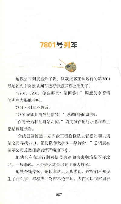 一只宠物小兔来到了小静家,它马上和其他玩具们成了好朋友。可是快乐的日子并不长久,前任宠物小兔的命运向它敲响了警钟。小兔怎样才能摆脱被宰割的命运?出逃、绝食……通通不行。玩具们为此了制订一个大胆的计划…… 《7801号列车》是“郑渊洁七彩童话”系列之一。《7801号列车》收录了《大侦探荞麦皮》;《三十六万五千天》等故事。
