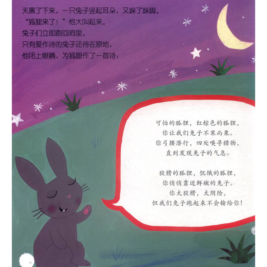 一只兔子特别喜欢作诗,可他觉得非常孤独。兔子同胞们都不欣赏他的诗,其他动物嫌他太吵闹。然而,在一个繁星闪烁的夜晚,他遇到一只志同道合的绵羊……兔子诗人和绵羊诗人的相遇,会不会擦出李白遇到杜甫似的火花呢?一首首有趣的动物诗就这样诞生了。