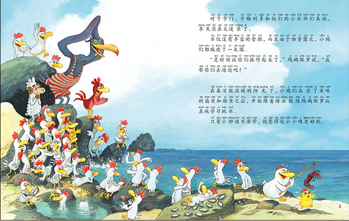 鸬鹚佩罗带着小鸡们到海边去学游泳。卡门、卡梅利多、小凯丽、贝里奥和小胖墩却无意中登上了一座逍遥岛。在这里每天都像过节一样,无限量提供糖果、蛋糕和各种美食,连河流都是冰镇薄荷水,大家沉浸在欢乐的享受中……可是,天下没有免费的午餐,这里真的是天堂吗?