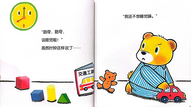 《谁还没睡觉》讲述了天黑了,但是小熊酷奇不想睡觉,想跟玩具们玩,可是小汽车困了,积木困了,电灯困了,绘本困了,妈妈也困了,大家都去自己的地方睡觉了……最后没有人跟酷奇玩,酷奇也进入了梦乡,呼呼——睡得真香甜,晚安啦。
