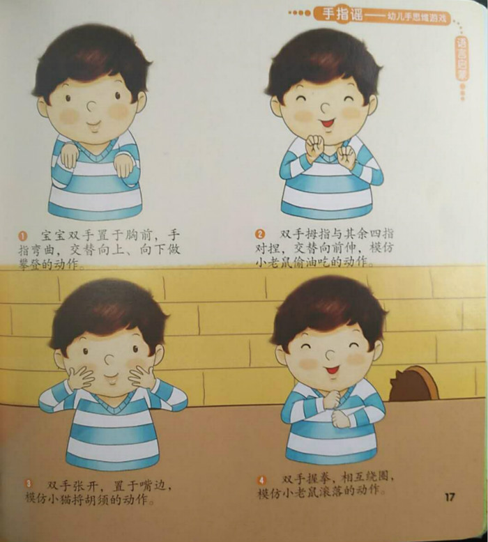 蔡玉刚创作的《手指谣(语言启蒙)》节奏明快,韵律优美,配合适宜的详细明了的手部动作图解,提供家长与宝宝一起边念、边听、边玩、边做的机会。不但能使宝宝在充满亲情和乐趣的良好环境中陶冶身心,增进双手的灵活性与协调性,*是对大脑机能综合全面的训练,能有效的提高宝宝的学习能力和智力发展水平。