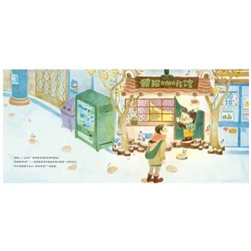 寒冷的冬夜,小木随妈妈赶上后一班地铁,奔向郊区的家。和往常一样,疲惫的他们默默地坐着,困意来袭。在恍惚间,小木和妈妈看到对面广告一闪而过——狸猫咖啡馆。这是什么时候开的呢?到站了,小木和妈妈下了车。但这一次有所不同的,小木央求妈妈到狸猫咖啡馆去坐坐。原本急匆匆往家赶的妈妈,也不由得被小木说动了。于是,好奇的母子俩推开了狸猫咖啡馆的门。 点了两杯热牛奶之后,妈妈累了,趴在桌子上小睡一会儿,小木呢,仔细打量起这家咖啡馆来。就在这一眨眼的工夫,咖啡馆换了一副光景:店主人和客人都是小动物。小木惊住了! “你是人吗?”忽然,一个声音响起,是谁在和小木说话? 原来,是一只小狐狸。小木又一次呆住了,不过,很快,他们就交上了朋友。小狐狸请小木帮忙折纸飞机、编花绳,小木呢收到了小狐狸送的石榴籽儿一般闪亮的纽扣。他们一起玩游戏,小木似乎回到了更小的时候……就在忘情之时,...