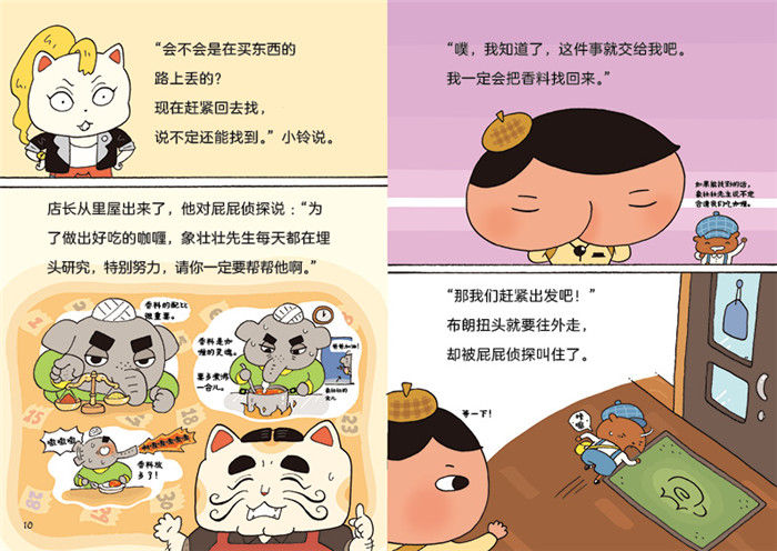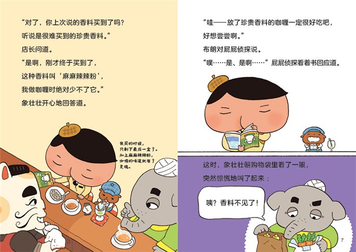 屁屁侦探思维进阶版内容介绍 屁屁侦探虽然长着一张“不正经”的脸, 却是一位冷静沉着、思维缜密、IQ高达1104的名侦探。即便再离奇的案件, 屁屁侦探也能运用观察、对比、推理等破案手法找到案件的线索, 并使用自己的绝杀技——“噗噗”一下,便能完美破案。 在充满巧思的、情节曲折的侦探推理故事中 还揉入了迷宫、文字谜题、密码、益智游戏等诸多孩子喜欢的元素。 引领孩子在享受阅读乐趣的同时,发展出观察力、洞察力、思考力等多项能力。 单册内容介绍 咖喱香料失踪事件 象壮壮的咖喱餐车即将开张,他采买了大包小包的东西,来到“幸运猫”咖啡店。没想到好不容易才买到的珍贵香料,居然不翼而飞了,这是制作咖喱必需的香料,而且买的时候已经是后一瓶了,惊吓过度的象壮壮甚至因此晕了过去…… 屁屁侦探从收据推测出象壮壮先生的采买顺序与经过路线,逐一探查香料可能掉落的地方,沿途他遇见了好几位旧识,像紫衣夫人、泡丽可和山羊哥……从他们和屁屁侦探的对话中会透露出什么重要线索吗?象壮壮先生的咖喱,究竟有什么让人一吃就上瘾的独特魔力呢?