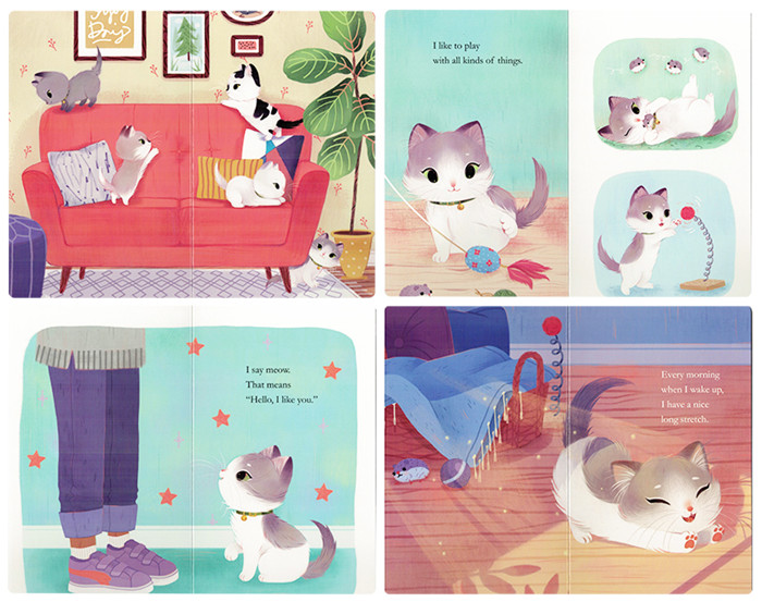 I Am a Kitten《我是一只小猫》是风靡全世界的I Am a Bunny《我是一只兔子》的姐妹篇,由兰登书屋旗下小金书系列的前艺术总监欧雷·里索姆(Ole Risom)多年前创作。2018年,这本经典绘本由新生代插画师Olivia Chin Mueller重新绘制插画,以全新的形式出版。故事有关好奇小猫Kate的日常生活,她和兄弟姐妹一起玩耍,在花园探索,结交新朋友,等等!