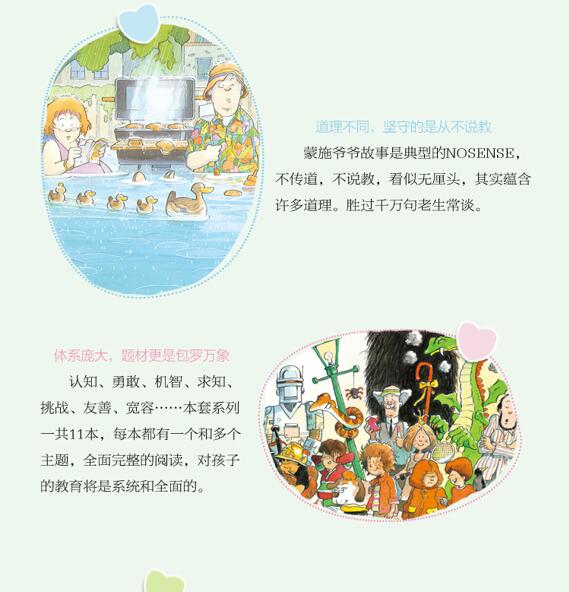 这是一套北美广受欢迎的故事大王蒙施爷爷的绘本。既包含各种现代故事,又有民间传说和战争后遗症故事。大部分故事取材自儿童的亲身经历,还有孩子们自己编的故事,情节奇幻,想象丰富,笑料不断。蒙施不断讲述,不断完善,*终成书,每个故事酝酿的时间都有数年之久,非常具有吸引力。