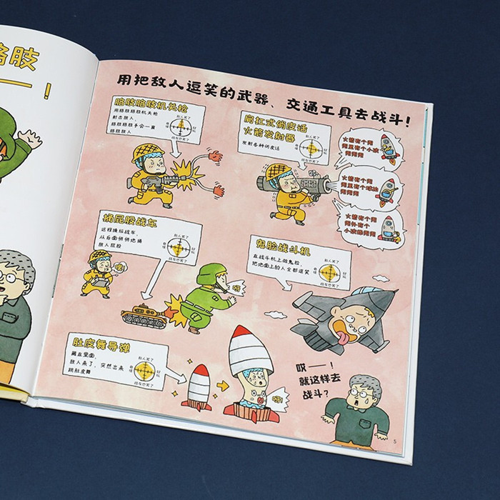 这是爸爸和孩子的晚安睡前游戏,也是屎尿屁和战斗装备结合大全,还是从翻书到故事讲完全程不许笑的憋笑大书。从把敌人逗笑到骗敌人大笑,再到奇奇怪怪的进攻,最后到不被敌人逗笑训练,全都模拟了游戏场景,把想象的空间和选择的权利交还给小读者。小朋友可以根据自己的脑洞逗笑敌人、憋住不笑、赢得游戏;也可以在过程中哈哈大笑,虽输了比赛,却拯救了全世界。
