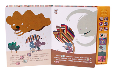 故事是每个宝宝心中最美丽的梦,它能开启孩子的想象力,激发创造力。 可以发声的故事书,对于不识字宝宝来说更有极大的好处。它独特的发声设计可以吸引宝宝主动去探索,培养学习主动性的同时节约了爸爸妈妈朗读的时间,是一本真正属于宝宝自己的故事书。 宝宝在摁各种按键的时候,还能锻炼他们小手的灵活性,而且便易操作的方式,能给宝宝带来成就感,增强自信心。 故事发声舒缓柔和,就好像爸爸妈妈亲自给宝宝讲故事一样,有特别强的感染力,随着故事情节起伏,宝宝的情感也会跟着变化,各种情感的体验,对良好的情商培养也有潜移默化的作用。好像电视背景音乐一样,我们给宝宝的故事书还带有音效伴读,比如老鼠小姐出嫁,必然会有唢呐的吹打,这样宝宝才会感受到热闹气氛,享受美妙故事带来快乐。 最后想告诉爸爸妈妈,发声设计的故事书可以在反复听的过程中促进宝宝的语言能力发展。当有一天,宝宝咿咿呀呀给您讲书中故事时,您的兴奋自不是一本书可以比较的。