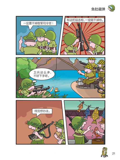 “儿童爆笑军事漫画”系列是专为儿童创作的爆笑军事漫画。作品以硝烟弥漫的战场和多姿多彩的军营生活为背景,讲述了发生在大头兵和战友、大头兵和敌军之间的一系列紧张刺激又令人捧腹的幽默故事。 书中,大头兵、博士、呆胖、敌军司令官为了赢取军事胜利,谋划了一次又一次令人啼笑皆非的军事行动。故事夸张、风趣,想象力奇特。漫画主人公大头兵形象诙谐,机智勇敢,不怕累,不怕输。幽默的故事中穿插着各种军事知识,让孩子在有趣的阅读中培养兴趣,形成良好的品质和正确的战争观。 《飞天步枪》: 敌人用瞌睡虫放倒哨兵,占领了营区,大头兵想出办法打退敌人;丛林里,大头兵学狼叫联系呆胖,却引来了真正的狼群;大头兵被敌人包围了,危急时刻,飞天步枪和兔子弹球救了他……快乐机智的大头兵,总是能化险为夷!