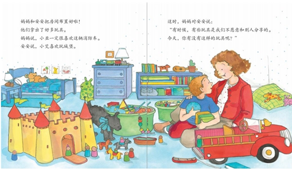 我喜欢和小伙伴在一起玩。妈妈说除了我*心爱的玩具,其他玩具都要和大家一起分享。大家可以轮流玩玩具,一起吃点心。分享真是一件愉快的事!