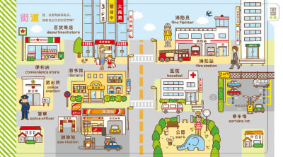 系列中的第二本以场景来分类,将孩子们带到街道、商店、餐厅、超市、医院
