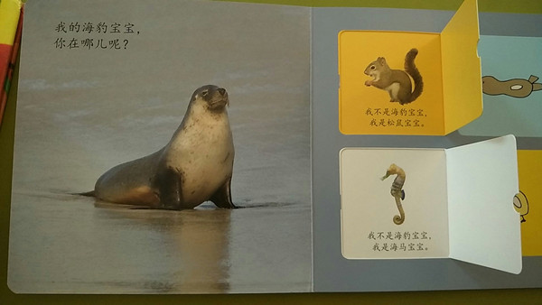 通过翻翻卡的形式,让小朋友对应寻找不同动物。加深了对动物抽象形象的提取能力,也加强了小朋友的逻辑思维能力。