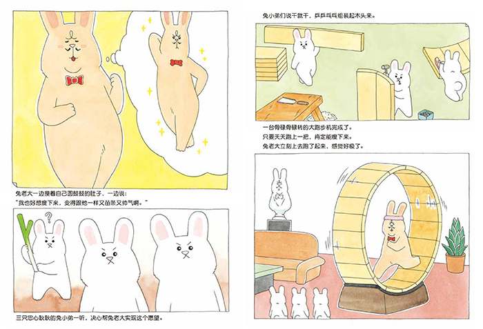 兔老大是三只兔小弟的老大哥。兔老大总有不可思议的愿望,这一次他好想成为又瘦又帅的兔子哦。虽然愿望看起来遥不可及,但只要有兔老大和他忠心耿耿的兔小弟在,大家就有再试N次的勇气!脑洞大开,多番尝试,永不言弃——他们想尽了一切办法,甚至让兔老大和狮子赛跑、去火山蒸桑拿……终于,在吃了好多天的“空气料理”后,兔老大瘦身成功,可三只兔小弟也饿成了皮包骨。瘦下来的样子真的会带来快乐吗?兔老大开始重新思考减肥的意义,最终发现原本大家圆鼓鼓的样子才是最好的。