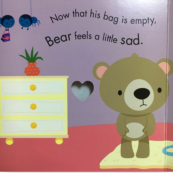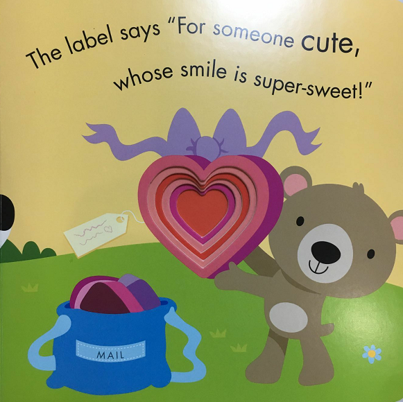 这是一个温暖的故事。封面标题是大大的KISS和一个富有立体感的心形,远远看去,好像是跳动的心房。可爱的动物,清新的画面,甜美的故事……到处都流露出暖人心房的爱意。这是一本富有创意的绘本。封面层层重叠的心形,在每一个开页里面都会变成不同的礼物。书中字体的设计也是富有心机,动物和礼物的单词都被放大,别致弧形的排列仿佛小动物们愉悦的心情。