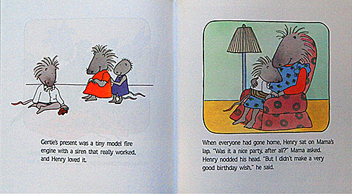 Trelease writes, "A simple but boldly drawn picture book will help arouse the child's senses of sight and curiosity." Henry's Happy Birthday is such a book. It's a satisfying story which speaks directly to a child's experience. We think this book will make story time a happy experience for both you and your child.