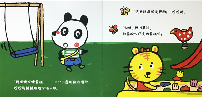 《盼盼在游乐园》星期天妈妈带盼盼到游乐园玩。盼盼从滑梯跑到秋千,玩得很开心。他带来的挖沙子的玩具却被扔到了一边。可是,盼盼看见有一个陌生的小朋友在玩他的玩具!他有点儿生气……可是,他也有点儿想跟新朋友一起玩做“蛋糕”......盼盼会他享他的玩具吗?盼盼能交到新朋友吗?