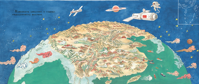 本书为《一条大河》的姊妹篇。在茫茫的宇宙中,有一颗蓝色星球,在这颗星球的北面有一个美丽的地方,那就是中国,中华民族世代繁衍的地方。这里是那么磅礴广阔,有地球上的峰珠穆朗玛峰,有巍峨壮观的五岳,有两条奔流不息的长河——那是祖先的摇篮,孕育了辉煌的华夏文明。这片江山是如此多娇,五彩的梯田,绿色的草原,洁白的雪乡,清新的海岛,热情的火焰山,谱写着不同的生命赞歌。 山河如画,岁月如梭。过去中国用可歌可泣的奋斗摆脱了苦难的枷锁,今日中国将更加意气奋发,勇往直前。 绘本将视角拉远,让孩子从茫茫的宇宙里,漫长的历史长河中,去认识中国这片土地。绘本展示了中国从南到北、从西到东的地理风光,还展示中国从古到今、从今天到未来的坎坷与辉煌;不仅展现了中国的高速发展的经济与科技,还讲述了中国特有的文化精神、情感内核。