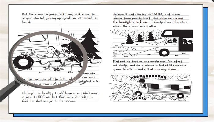 主人公格雷是个不怎么起眼的初中小屁孩,他有那么一点小聪明,天生爱玩,希望通过自己满脑子的鬼点子吸引大家的眼球,因此屡屡闯祸,笑料百出。本册中,格雷一家人因房子损坏而蜗居在外婆家的地下室许久,他们绞尽脑汁策划了一场“穷游”——房车露营。露宿野外远没有想象中的简单,露营器材店的伙计甚至建议带上一些特殊的装备——驱逐熊的狼尿、防壁虱的驱虫水、急救箱、防水火柴、蛇咬疗伤包……这一趟荒野冒险之旅似乎惊险重重,格雷一家能平安度过吗?