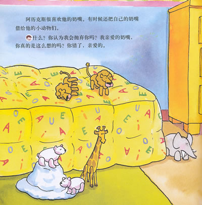 阿历克斯舍不得他的奶嘴,他的爸爸妈妈在寻找办法让他和奶嘴说再见,因为已经是“挥别”奶嘴的时刻了。在家准备了一周后,随着圣诞节的来临,阿历克斯决定把自己心爱的奶嘴送给圣诞老人。 这个大家熟知的生活故事意在娱乐中教育孩子,并给予家长简单的建议让孩子自己脱离奶嘴。