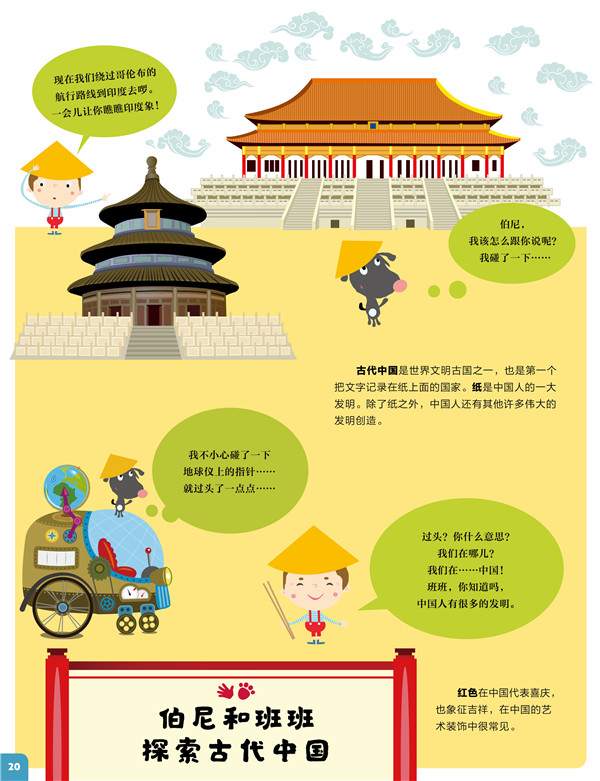 这是我社出版的启发精选世界优秀畅销绘本系列之一,适合3岁以上儿童阅读。你喜欢名胜古迹吗?想去世界各地旅游吗?来与伯尼和小狗班班乘着时光机穿越时空吧!他们将带你到古代中国感受古老文明,亲眼目睹古代世界七大奇迹,见证人类登上珠穆朗玛峰、穿越南极、探索外太空的种种极限挑战……你准备好了吗?快跟着伯尼和班班一起去探秘吧!