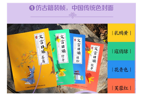 《文言日诵》是亲近母语继《日有所诵》后历时五年研发的一套适合6~14岁孩子阅读的文言诵本。精选365篇文质兼美的经典文言文,每日一诵,每天五分钟,帮孩子构筑母语根基。 爱听故事是孩子的天性。《文言日诵 故事》精选90篇短小有趣的文言故事,并按照主题分为:童趣、智慧、神话、寓言、笑林、史传、逸事、异闻。全文注音、疑难字注释,部分文章给以赏析,扫码可听名师诵读音频。 《文言日诵 博物》将带领孩子探索眼中古人的世界。本书精选90篇文言文,按照主题划分为:天文、地舆、岁时、农桑、草木、宫室、鸟兽、器用、巧工。全文注音,疑难字注释、部分篇目给以赏析,扫码可听名师诵读音频。 《文言日诵 修身》将通过圣人语录及言行教孩子如何涵养心性。本册书精选90篇文言短文,按照主题分为:护生、亲恩、劝学、惜时、立志、言行、师友、诚信、修己、为学、精进、君子、仁义、礼乐、家国、为政、圣贤、弘道。全文注音、疑难字注释、部分篇目给以赏析,扫码可听名师诵读音频。 《文言日诵 名篇》精选95篇历代经典文言文,按照朝代划分为:先秦、两汉、魏晋南北朝、唐、宋、明清。全文注音,疑难字注释,部分篇目给以赏析,扫码可听名师诵读音频。 分册简介: 《文言日诵 故事》 爱听故事是孩子的天性。《文言日诵 故事》精选90篇短小有趣的文言故事,并按照主题分为:童趣、智慧、神话、寓言、笑林、史传、逸事、异闻。全文注音、疑难字注释,部分文章给以赏析,扫码可听名师诵读音频。 《文言日诵 博物》 《文言日诵 博物》将带领孩子探索眼中古人的世界。本书精选90篇文言文,按照主题划分为:天文、地舆、岁时、农桑、草木、宫室、鸟兽、器用、巧工。全文注音,疑难字注释、部分篇目给以赏析,扫码可听名师诵读音频。 《文言日诵 修身》 《文言日诵 修身》将通过圣人语录及言行教孩子如何涵养心性。本册书精选90篇文言短文,按照主题分为:护生、亲恩、劝学、惜时、立志、言行、师友、诚信、修己、为学、精进、君子、仁义、礼乐、家国、为政、圣贤、弘道。全文注音、疑难字注释、部分篇目给以赏析,扫码可听名师诵读音频。 《文言日诵 名篇》 《文言日诵 名篇》精选95篇历代经典文言文,按照朝代划分为:先秦 秦、两汉、魏晋南北朝、唐、宋、明清。全文注音,疑难字注释,部分篇目给以赏析,扫码可听名师诵读音频。