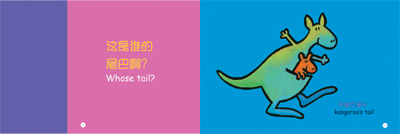 而每本书以主题编排,可以帮助孩子形成分类的概念,并在同类物品中寻找不同,以促进其逻辑思维的发展。因此这套书比较适合亲子共读,父母可以跟孩子分享:“你看,猴子的尾巴长长的,袋鼠的尾巴粗粗的。”使孩子认识到同中的不同,并获得相应的描述语言。