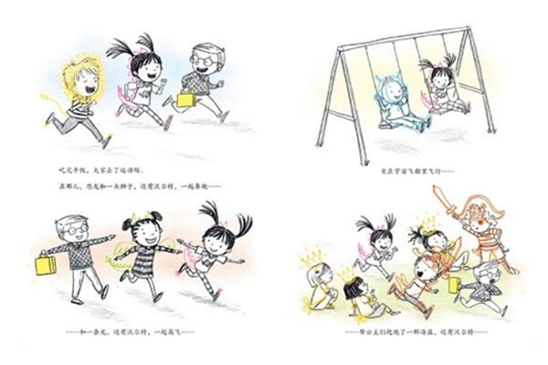 让我们来认识一下“小恐龙”爱丽吧。这个小女孩有一颗“恐龙心”,她走路跺着脚,大口大口地吃东西,还喜欢发出恐龙一样的吼叫声——“嗷呜”!