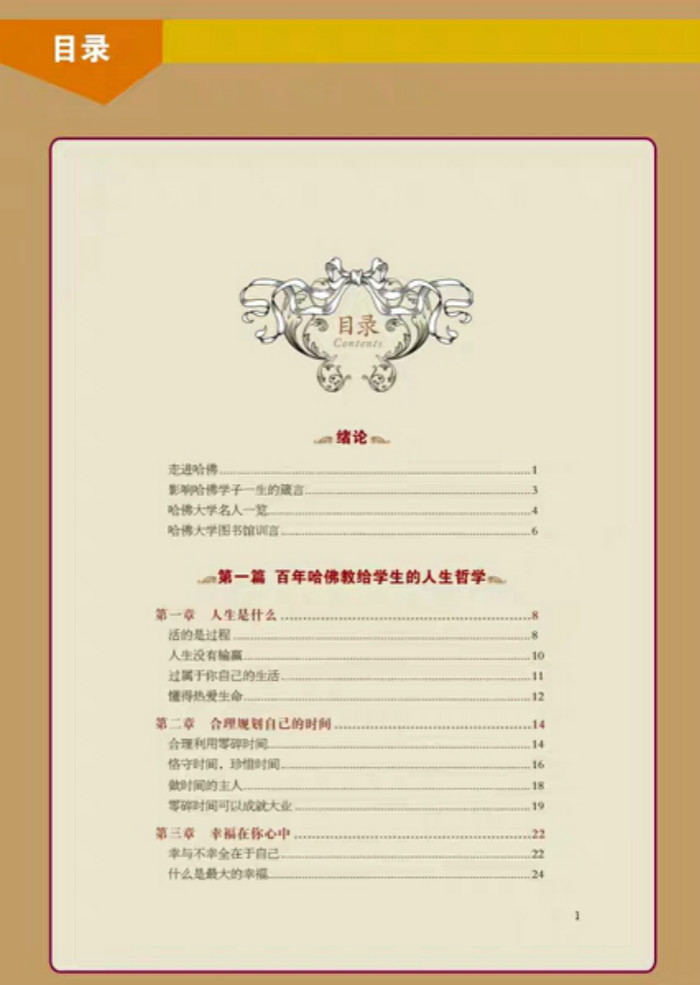 本书是《美德书》之后又一部伟大的励志经典。哈佛大学先后培养了7位总统,34位诺贝尔奖获得者,数以百计的***财富精英。这些杰出的人物,曾经对美国和世界产生了巨大的影响,而且还在继续产生深远的影响。哈佛靠什么打造了这些巨人?他们的教育中有什么深藏未露的秘密? 所有阅读这本书的读者——无论是涉世未深的青少年,还是经历过世事风雨的成年人,但愿这本书中的某一个故事或者某一句话能改变你的人生,从而使你由平庸变得非凡,从失败走向成功。